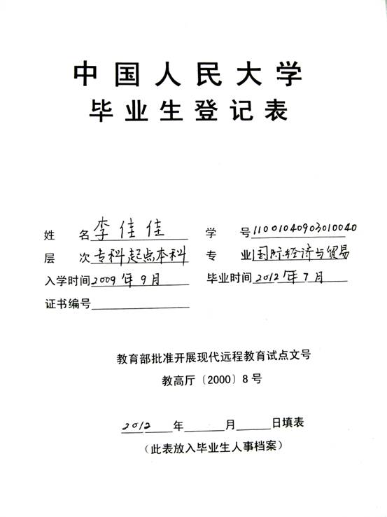(1)《畢業(yè)生登記表》一式兩份,務(wù)必于2012年8月10日-2012年8月24日期間提交(上午9:00—12:00,下午13:00—17:00),周六、周日不休息