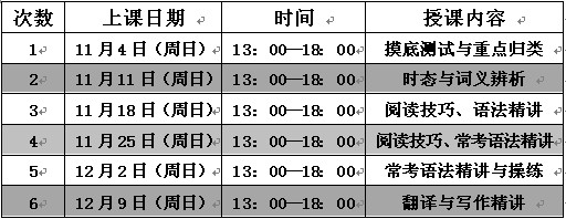 2012年12月份統(tǒng)考英語面授輔導(dǎo)班報名通知