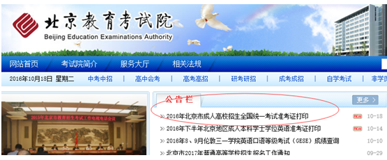 為方便考生領(lǐng)取準(zhǔn)考證,從2015年下半年開(kāi)始,考生可登陸北京教育考試院網(wǎng)址:www.bjeea.cn 憑姓名和身份證號(hào)自行打印準(zhǔn)考證。本次考試打印準(zhǔn)考證時(shí)間: 10月14日 8:30——11月5日 8:30。