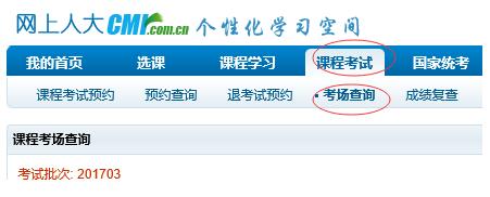 2、考場(chǎng)查詢方法:個(gè)性化學(xué)習(xí)空間—課程考試—考場(chǎng)查詢